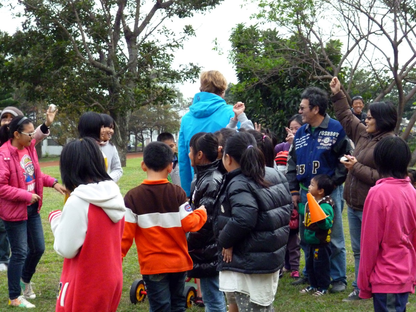 Race at the happening in front of the elementaryschool. An adult pushes, a kid steers. Everybody wants the tall stranger to push them....